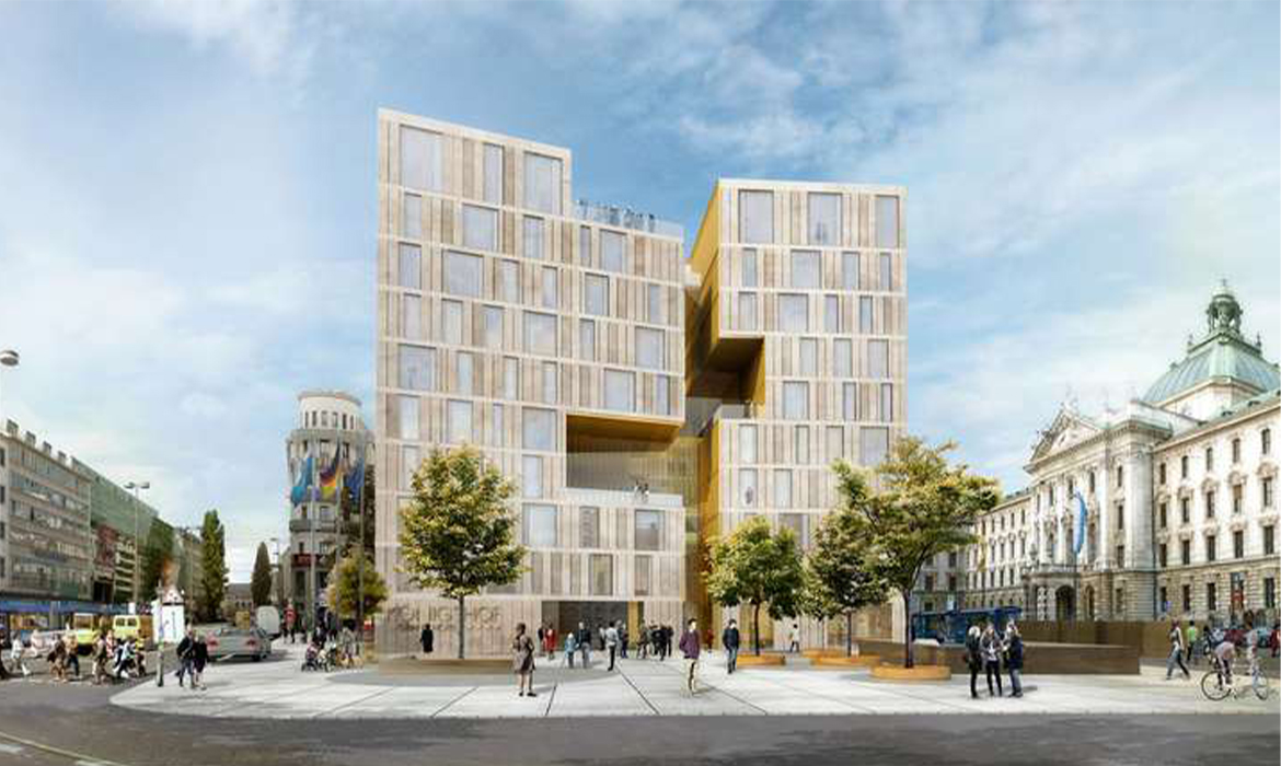 8 Geschosse, 2 geschossige TG, Büroräume, Gastronomie, KiTa, LEED Platin Zertifizierung