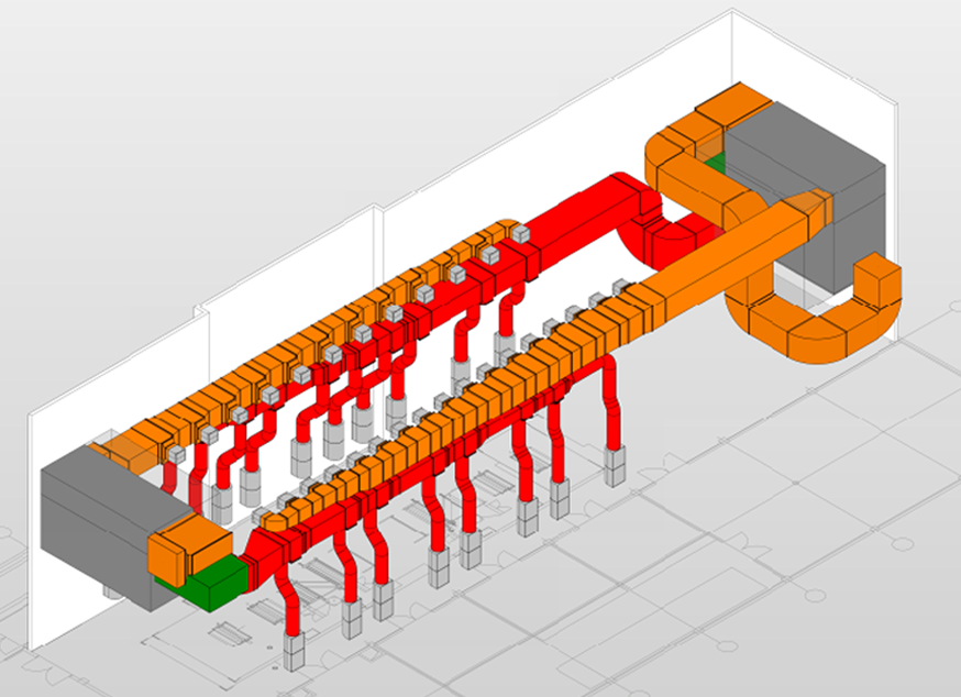 Einbau einer neuen Rotation (Druckmaschine) in vorhandene Halle. Neuinstallation von technisch notwendiger Versorgung (Raumlufttechnik)