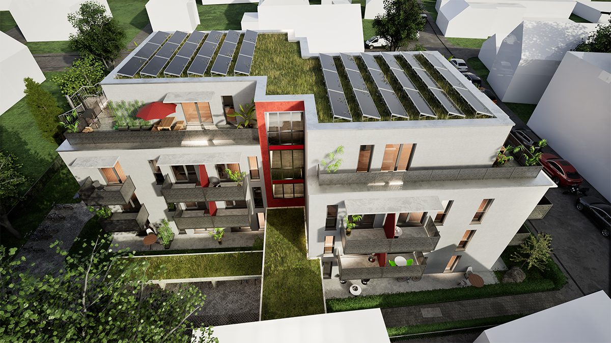 Ein Neubauprojekt von JACK.immobilien in der Markgrafenstraße 50, Augsburg. TechWerk unterstützt dieses Projekt mit Energie- und Fördermittelberatung.